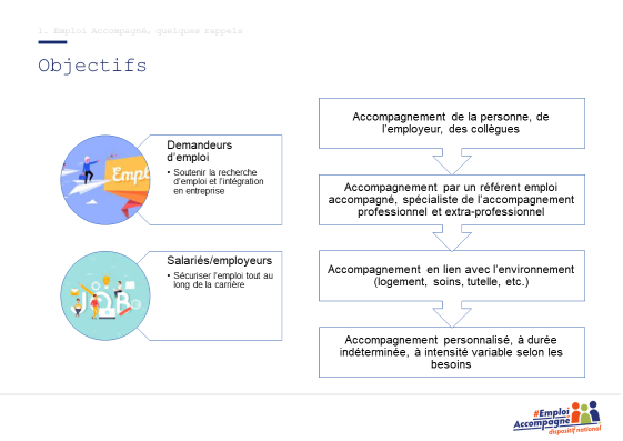 La Plateforme d’emploi accompagné a été créée le. Elle accompagne les personnes ayant une reconnaissance de la qualité de travailleurs handicapées (RQTH), âgés de plus de 16 ans, présentant comme handicap principale une déficience intellectuelle + sur orientation de la MDPH :